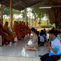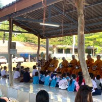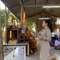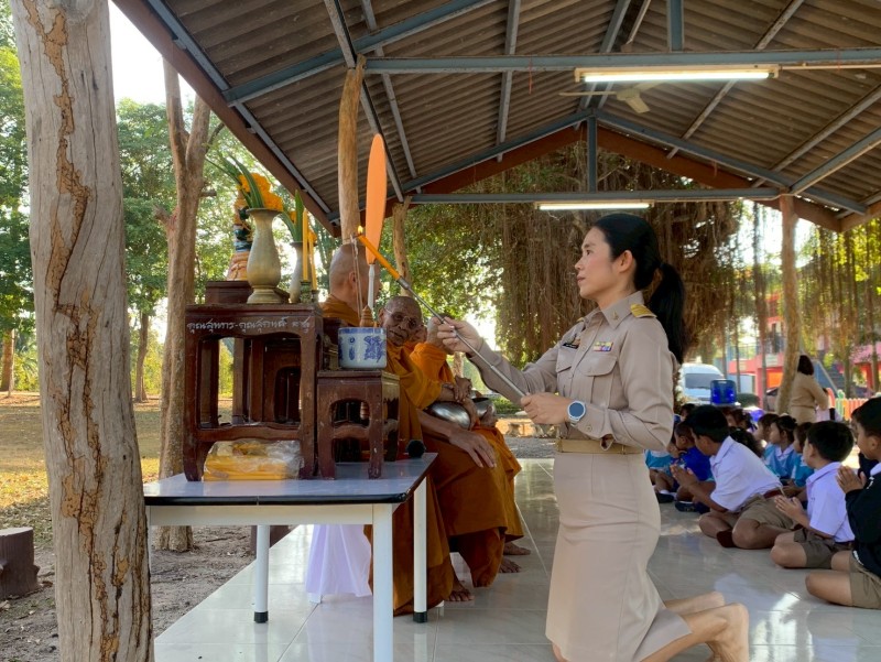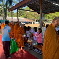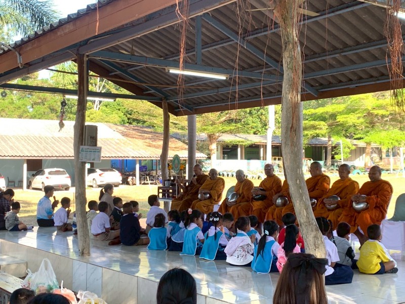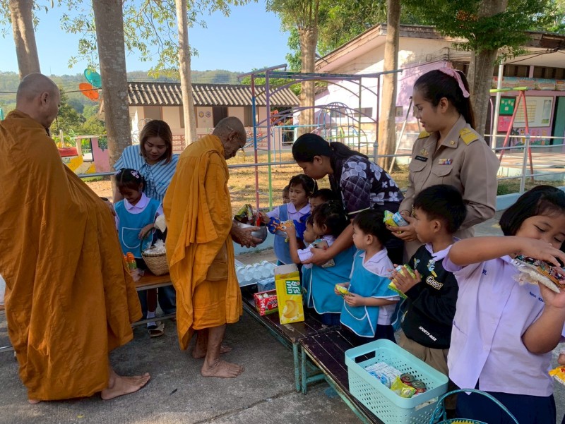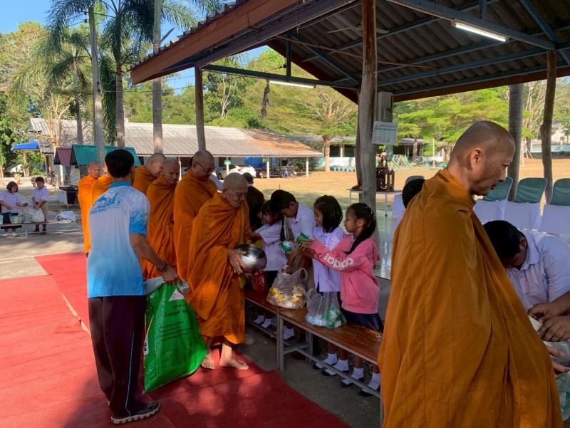 นางสาวอรุณี ศิริสุขไพบูลย์ ผู้อำนวยการโรงเรียนบ้านเขาหินแท่น คณะครู ผู้ปกครอง และ บุคลากรทางการศึกษา ร่วมจัดกิจกรรมตักบาตรข้าวสาร อาหารแห้ง เนื่องในโอกาสวันขึ้นปีใหม่เพื่อความเป็นสิริมงคลแก่ชีวิต